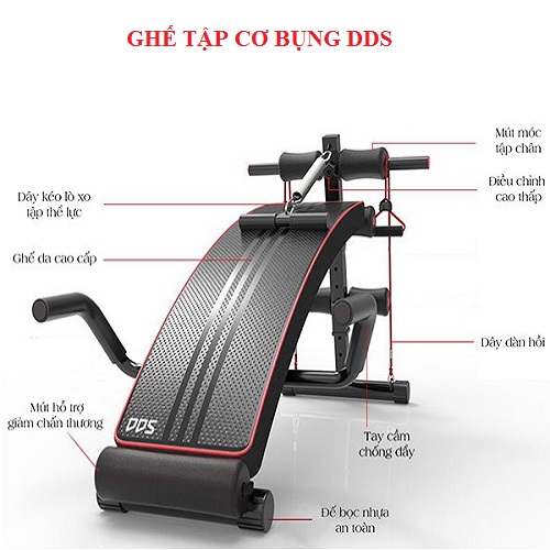 - Ghế tập bụng đa năng DDS-104 hỗ trợ tập thể dục, thể hình tại nhà hiệu quả với các bài tập cơ bản gồm: