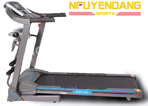 Thông số kỹ thuật máy chạy bộ điện MHT-942 - Màn hiển thị LCD 5"" cảm ứng với các dữ liêu: Thời gian, quãng đường, vận tốc, nhịp tim, body fat. - Điều khiển độ dốc và tốc độ trên tay cầm. -...Xem thêm