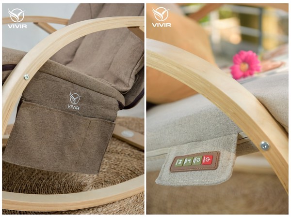 Khung ghế massgae VIVIR làm bằng gỗ sồi Nga, được uốn cong tự nhiên và ép chồng nhiều lớp lên nhau (các góc được bo đẹp, không có vết cắt hay khớp nối), tạo dáng bập bênh cho chiếc ghế nhưng vẫn đảm bảo độ chắc chắn với tải trọng tối đa 150 kg.