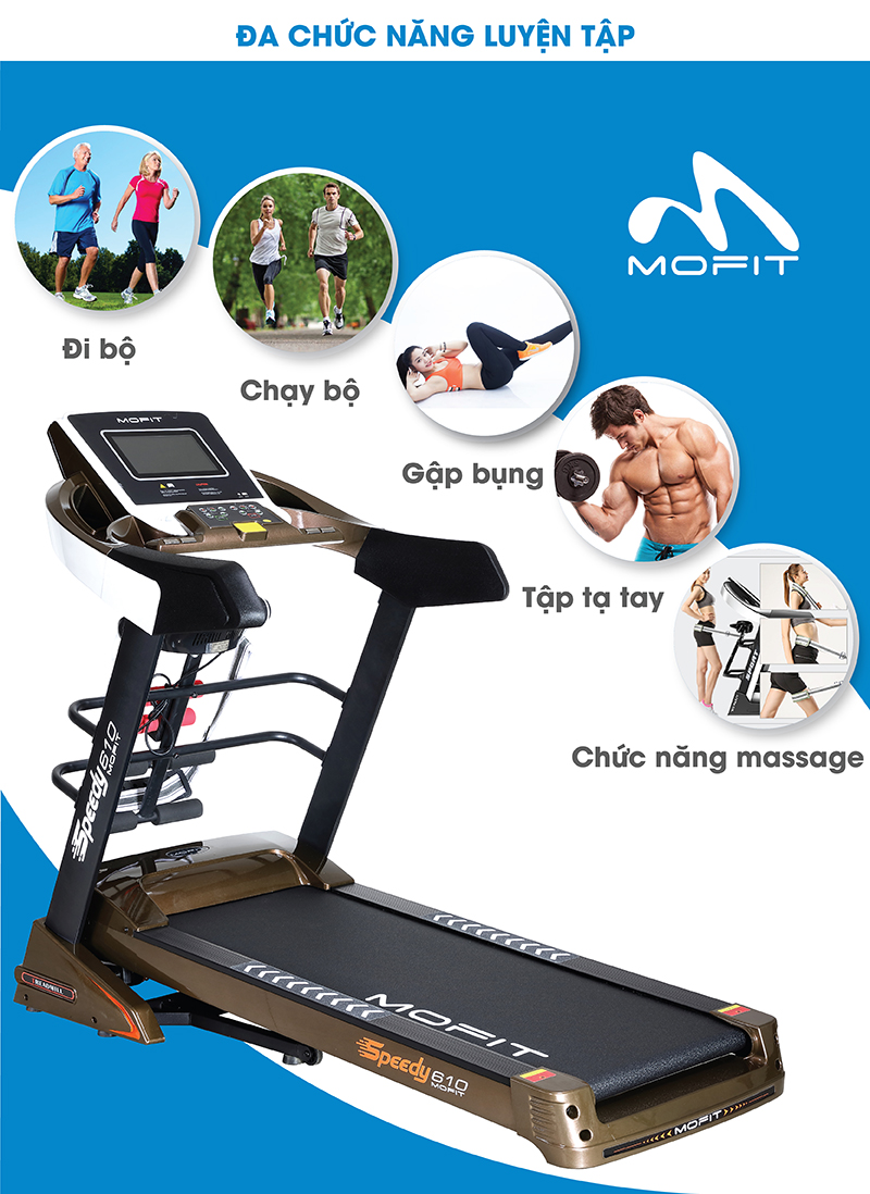 Nhắc đến MOFIT chắc hẳn bạn sẽ không thể không ấn tượng bởi bất kỳ một dòng máy nào của thương hiệu này cũng đầy đủ các chức năng trên cùng một máy đáp ứng nhu cầu của người sử dụng như: Đi bộ, chạy bộ, massage, gập bụng hay tập tạ tay,… Đặc biệt, máy chạy bộ điện cao cấp SP610 thích hợp với nhiều đối tượng và lứa tuổi vì vậy rất phù hợp để tập luyện tại nhà.