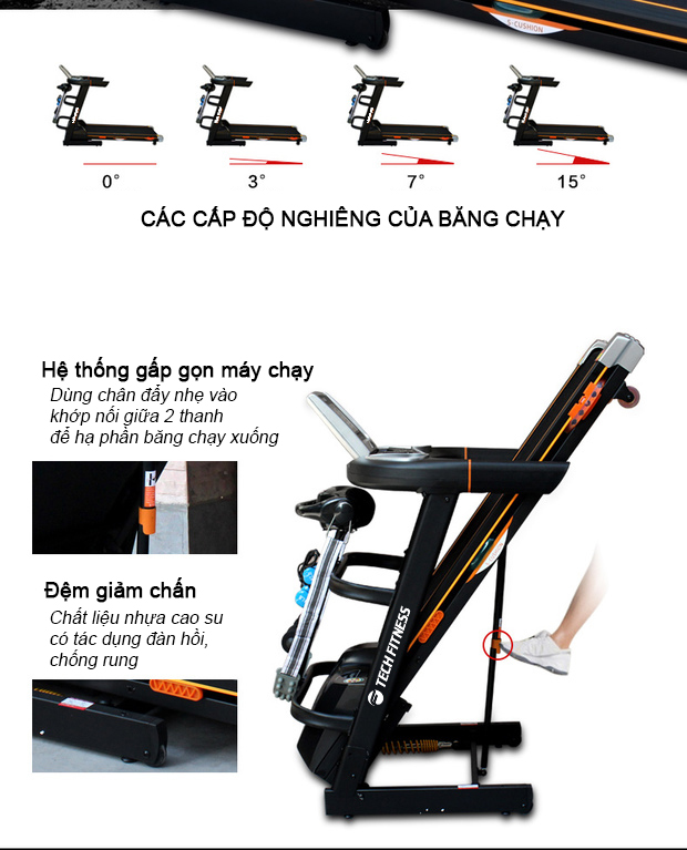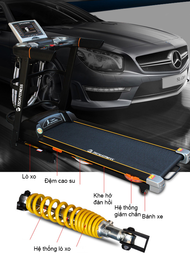 - Hệ thống giảm chân của TF-18AS được cải tiến vợt trội só với các máy chạy thương hiệu khác, hệ thống giảm chân của máy gồm 4 đệm cao su chân không và 2 thụt lò xo, khả năng gây chấn thương các khớp khi sử dụng máy chạy bộ 18AS là hoàn toàn không có.