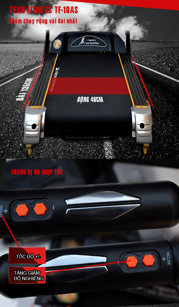 - Máy chạy bộ điện TF-18AS được tích hợp cổng USB, Mp3, kết nối với hệ thống Loa HIFI. Ngoài ra máy cũng được trang bị hệ thống cảm ứng đo nhịp tim