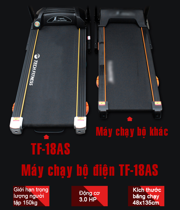Máy chạy bộ điện Tech Fitness TF-18AS với thiết kế độc đáo, cải thiện được nhiều tính năng so với các dòng máy chạy bộ điện khác.