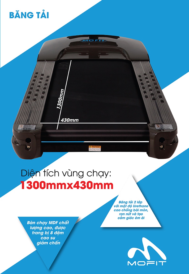 - Bàn chạy MDF chất lượng cao, được trang bị 8 đệm cao su giảm chấn.