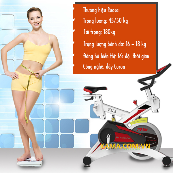 Xe đạp tập thể dục phòng Gym Ruosai S3 thiết kế sang trọng, kiểu dáng thể thao, S3 là dòng xe chuyên dùng cho phòng tập thể hình và gia đình. Xe đạp tập thể dục S3 với bộ khung chắc chắn luôn đảm bảo tốc độ hoạt động 24/24, khả năng chịu lực cao là lựa chọn tốt nhất cho các phòng tập thể hình.